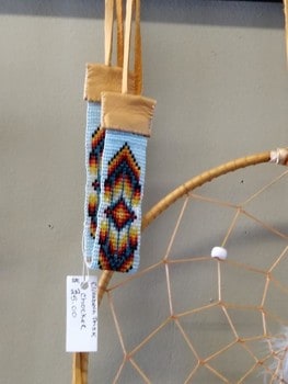 Tous les matériaux utilisés, des perles, des plumes et d'autres matériaux, sont de la première qualité. Des œuvres d'art de cinq artisans sont offertes en vente, et des objets d'artisanat sont exposés dans la communauté au Pabineau Gas Bar & Smoke Shop. Tous les articles dans le magasin ont été fabriqués par des artisans talentueux. Vous y trouverez une variété de capteurs de rêves uniques, capteurs de rêves fabriqués avec du foin d’odeur, belles boucles d'oreilles perlées ou en plumes, colliers perlés, parures de cheveux perlées, bracelets, mini coiffures, sacs de plantes médicinales et porte-clés