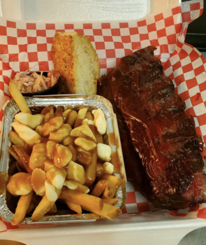 Dégustez des côtes levées, du porc effiloché, des burgers ou bien des poutines. Parlant de poutine, plusieurs sortes s'offrent à vous dont celle au bacon, au boeuf, deluxe ou encore la Scooby-Doo (saucisses). Des combos pour deux personnes sont également disponible.