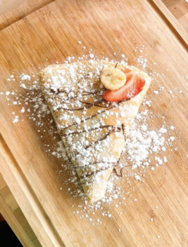 Depuis 2021, on y retrouve également La Crêperie! De délicieuses crêpes françaises maison faites directement devant vous! De nombreuses options de garnitures sont disponible.